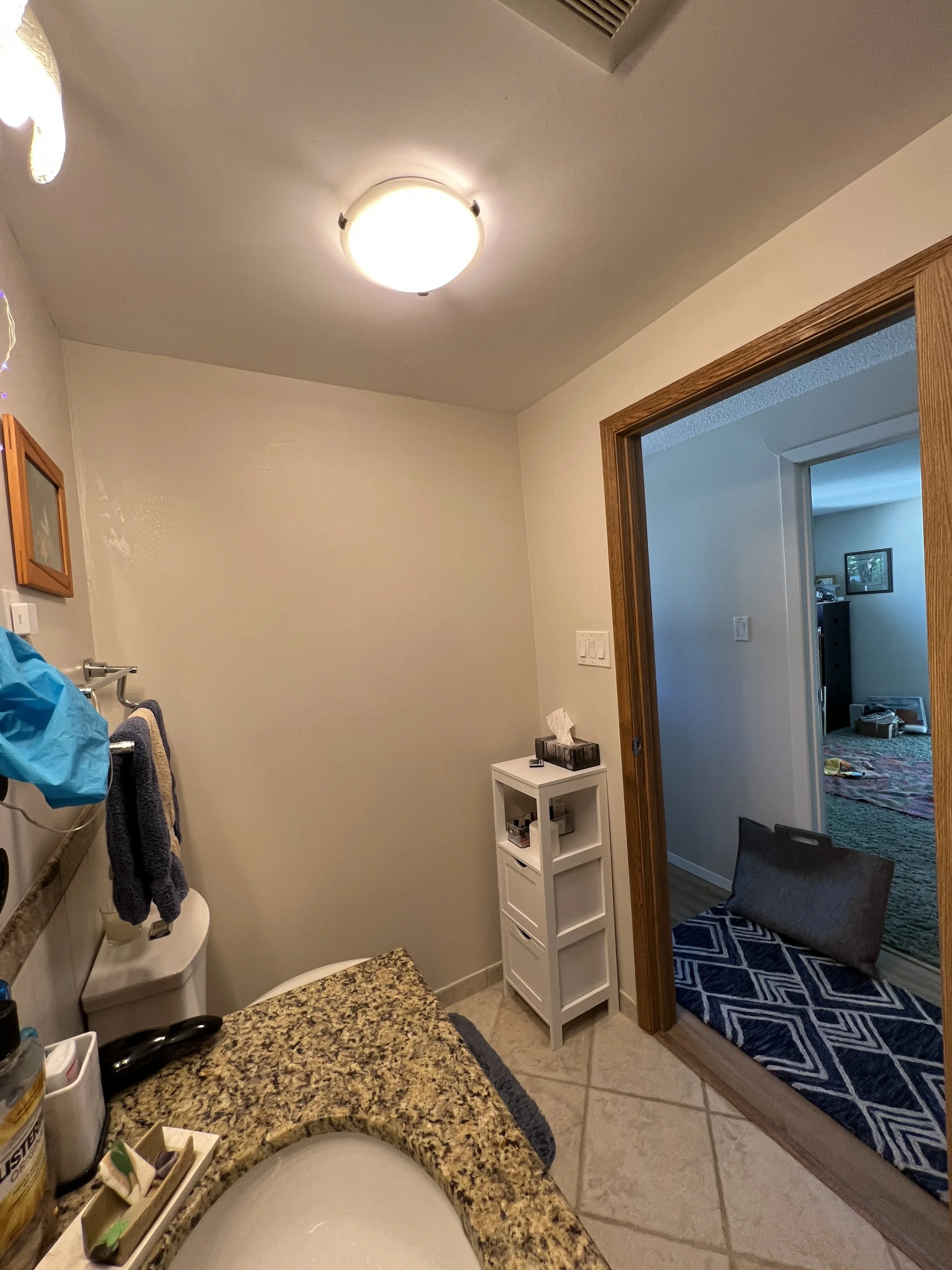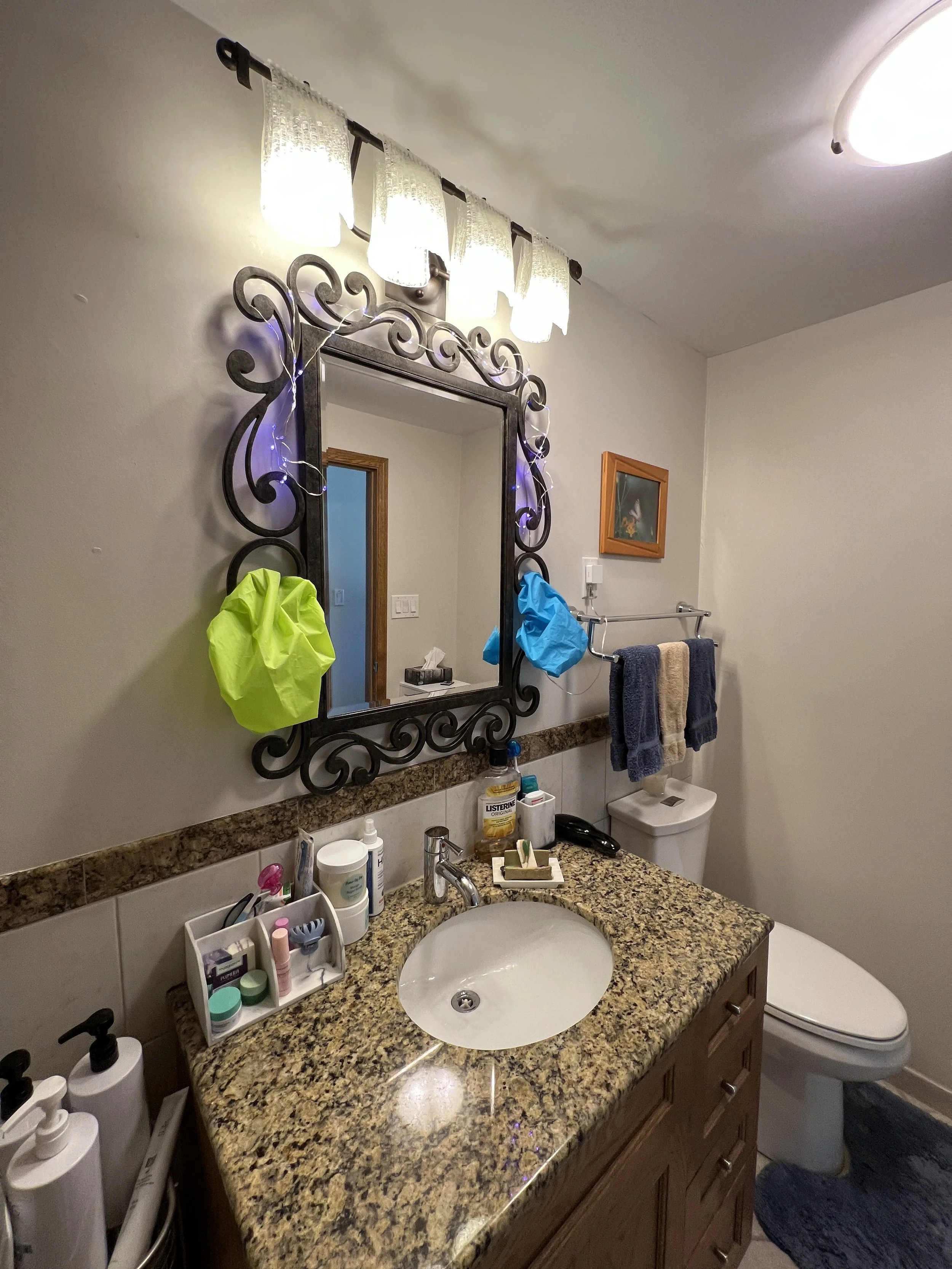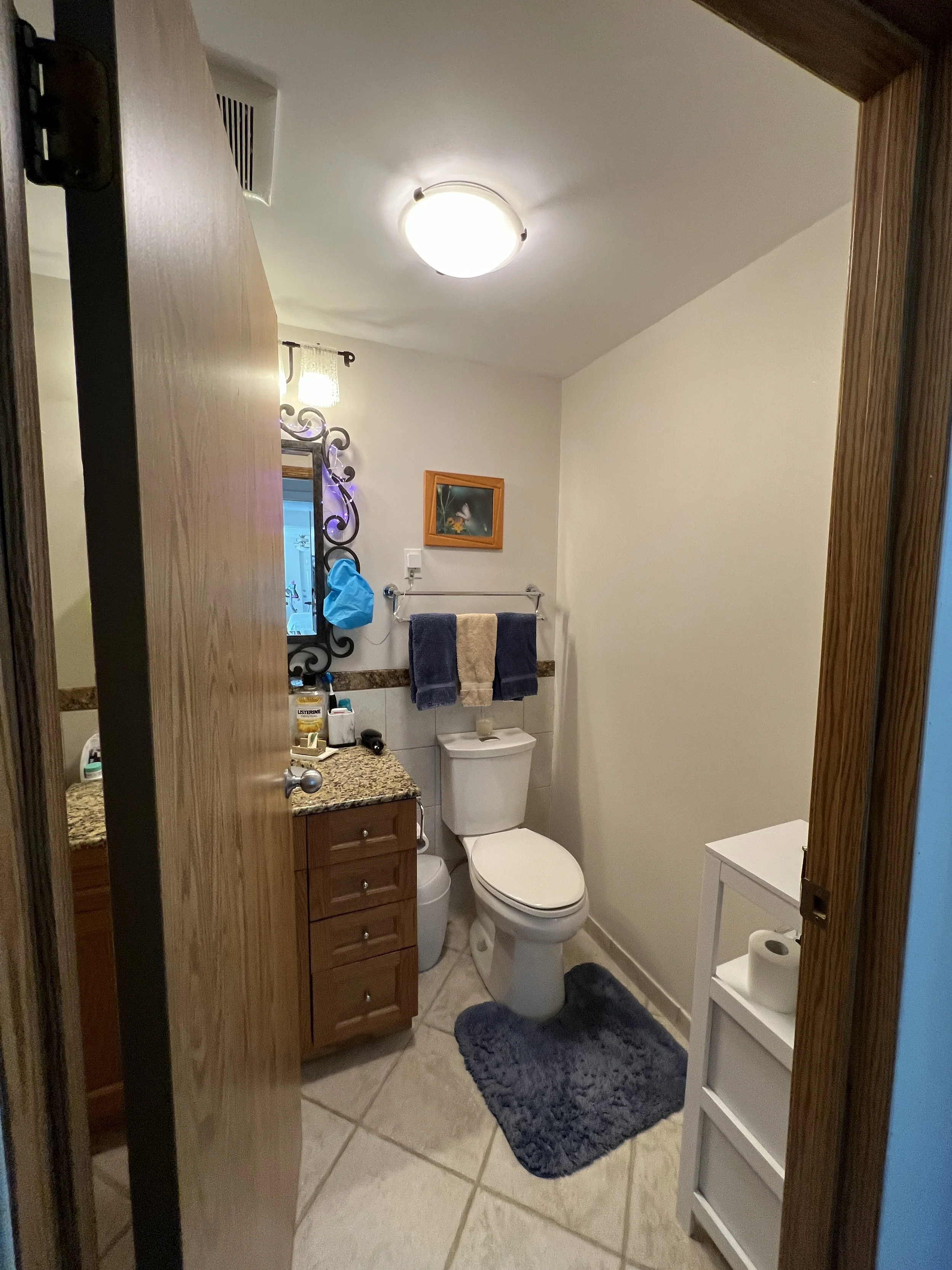 This space didn't have the advantage of natural light so we incorporated a sun tunnel over the toilet that lets in so much light that they rarely have to turn the lights on during the day!