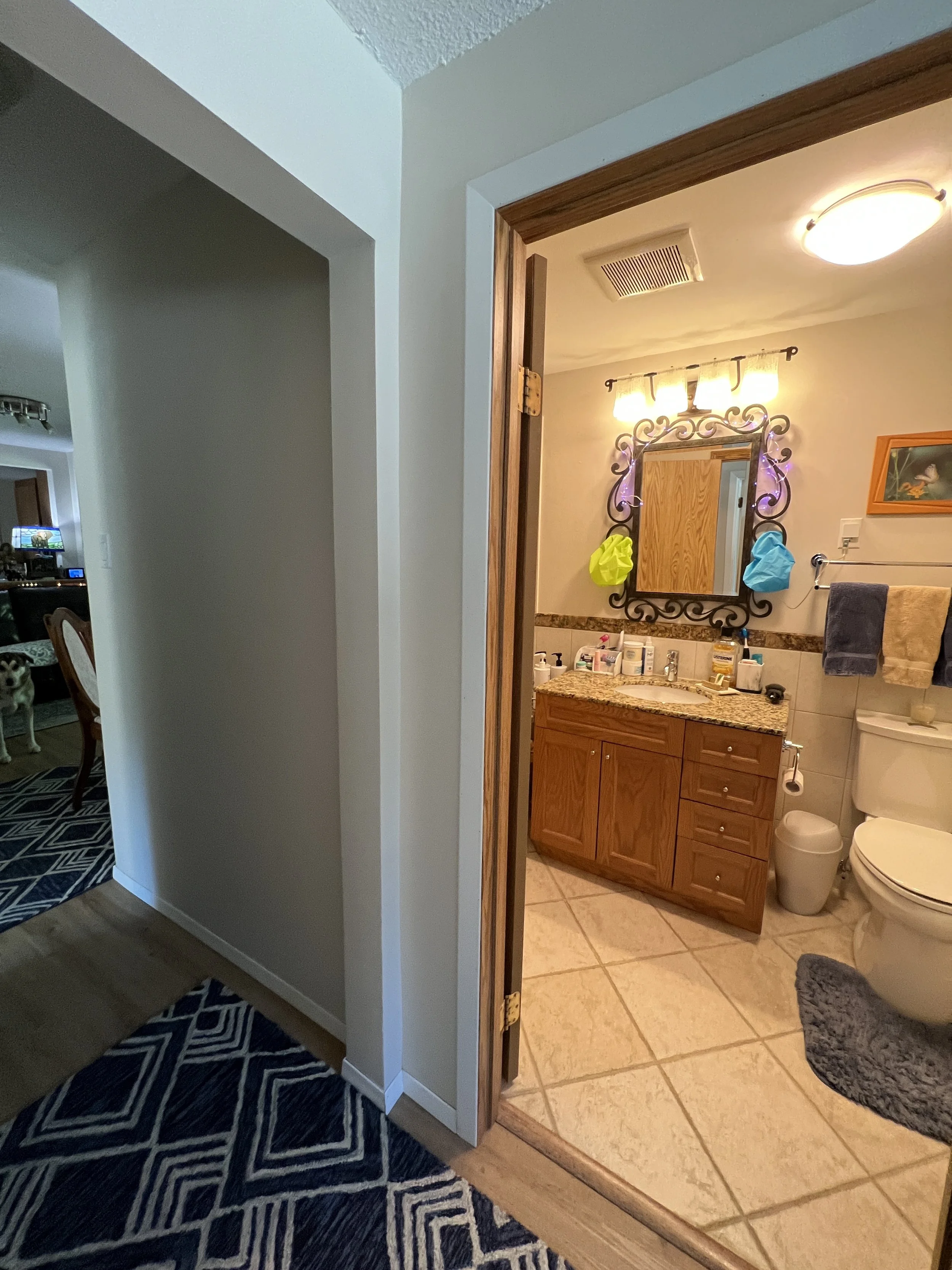 This couple's main bathroom had seen better days and needed an update, but, like many of our clients, they wanted a space where they could age in place for many years to come, prolonging their time in their home. So, why this bathroom isn't barrier-free, we did incorporate some features that allow our clients to live in the space now AND in the future such as sleek grab bars in the shower, luxury shower fixtures that promote wellness, a floating vanity, a comfort-height toilet, and a pocket door instead of a swing door.