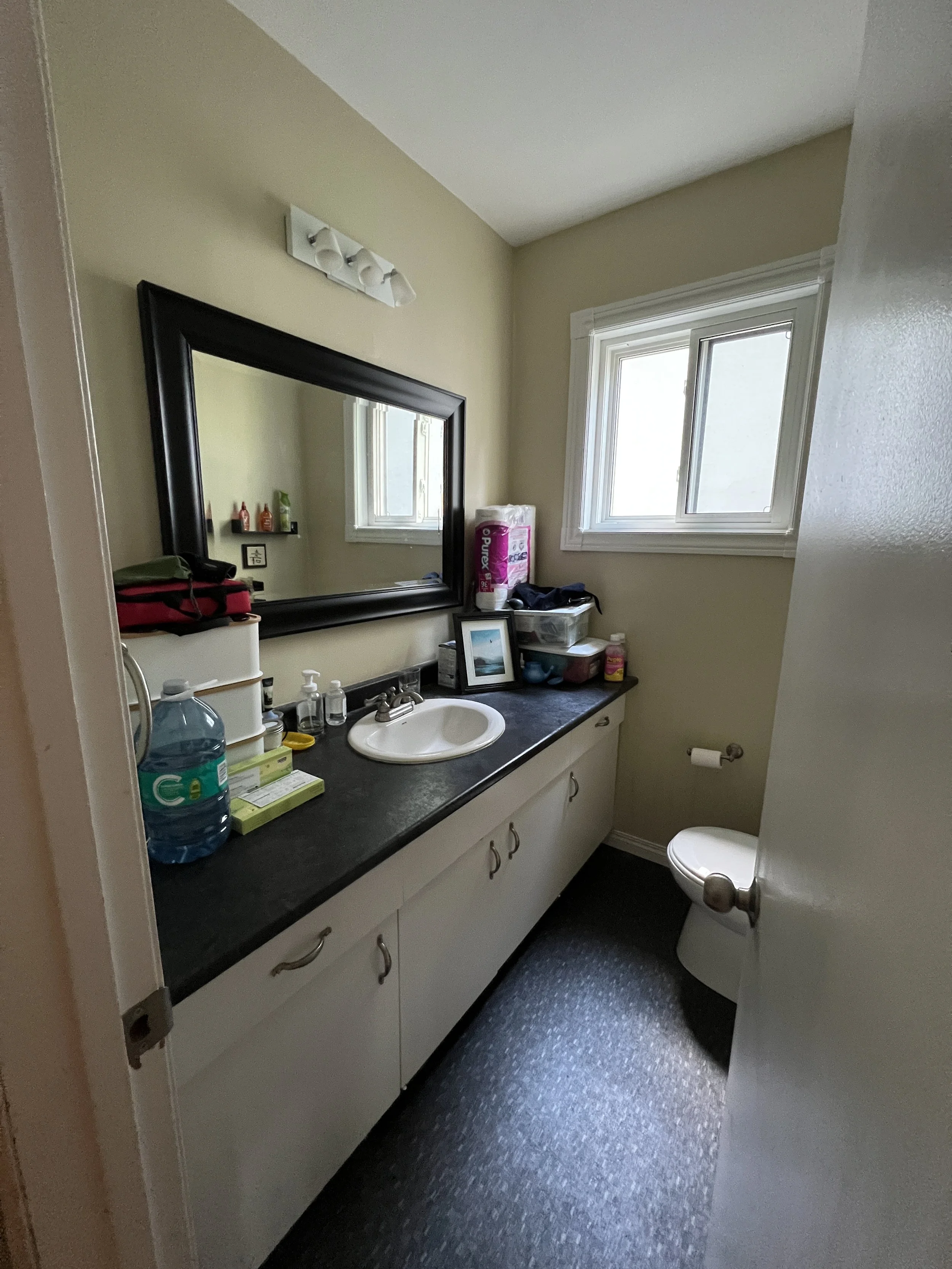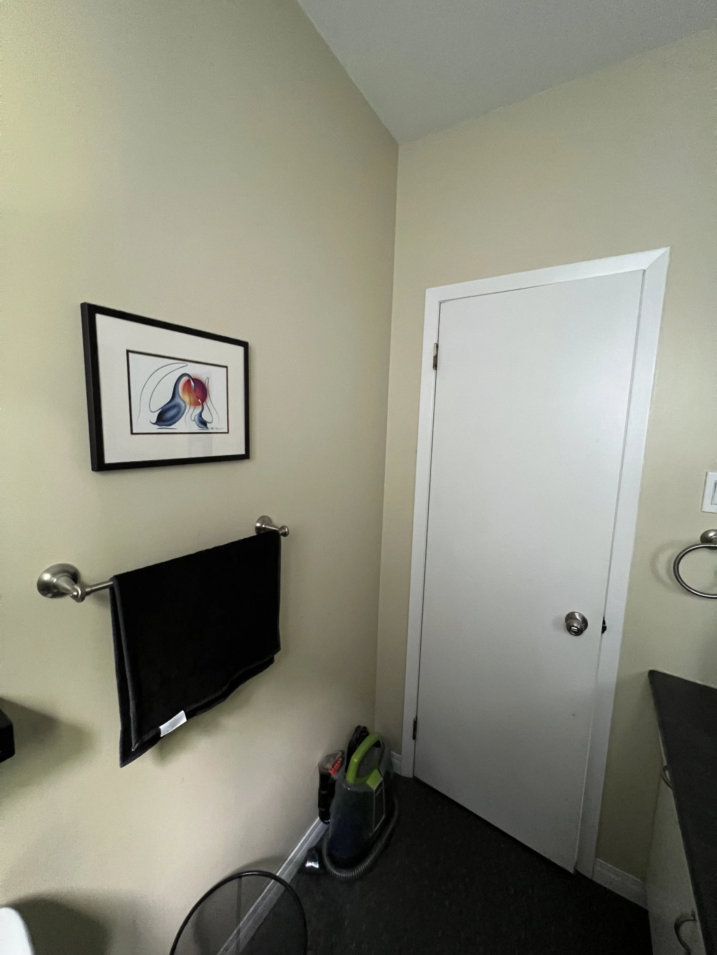 The best place to go bold? A powder room! This is a space where people don’t generally spend a lot of time so the space can handle a more “over the top” approach without overwhelming the user. We knew we wanted to do something dramatic from the beginning so we played with fun wallpaper to narrow down the design direction. The homeowners love Harry Potter, Lord of the Rings, Game of Thrones, cats, dogs, you name it, so we looked at some pretty cool Harry Potter Marauder’s Map wallpaper (IYKYK), and many really cute cat and dog wallpapers before settling on some bold birch trees. We turned the toilet to allow the new vanity drawers to fully withdraw, and mirrored the arched dining room cabinets for continuity between the two rooms.